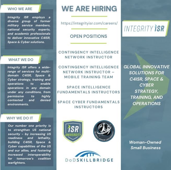 #IntegrityISR #WeKnowISR #WeKnowSpace #WeKnowCyber #WomanOwned